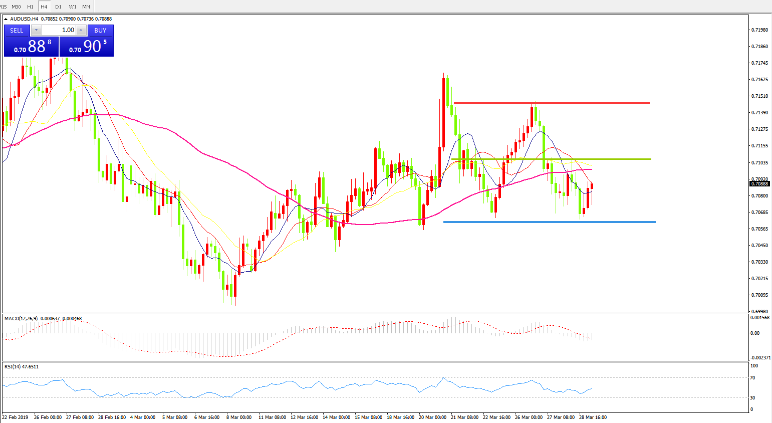 澳元兑美元AUDUSD    4小时线图: