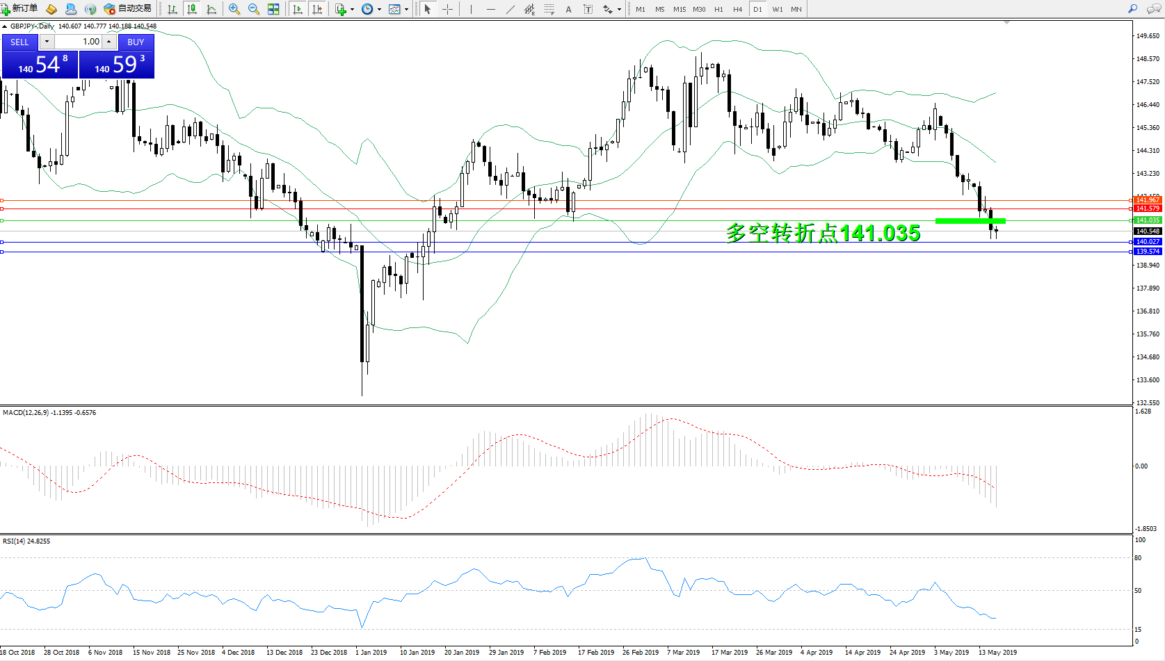 交易策略:141.035下方看跌,目标140.027139.574