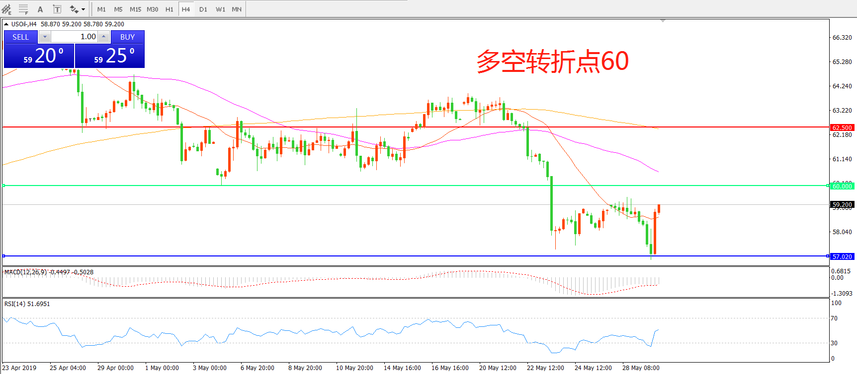 多空转折点:60.00