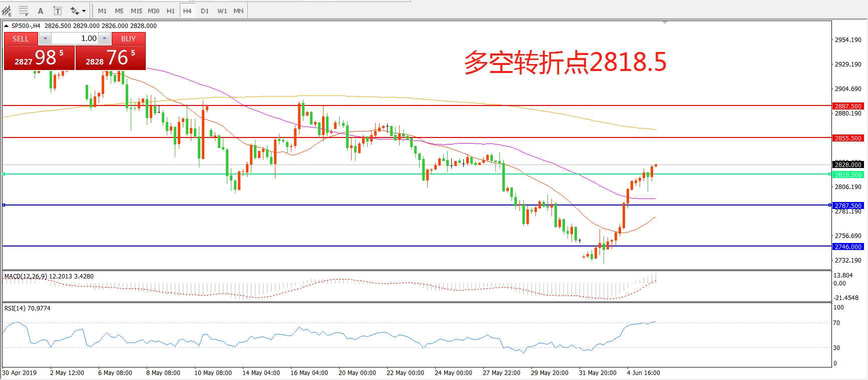 多空转折点:2818.50