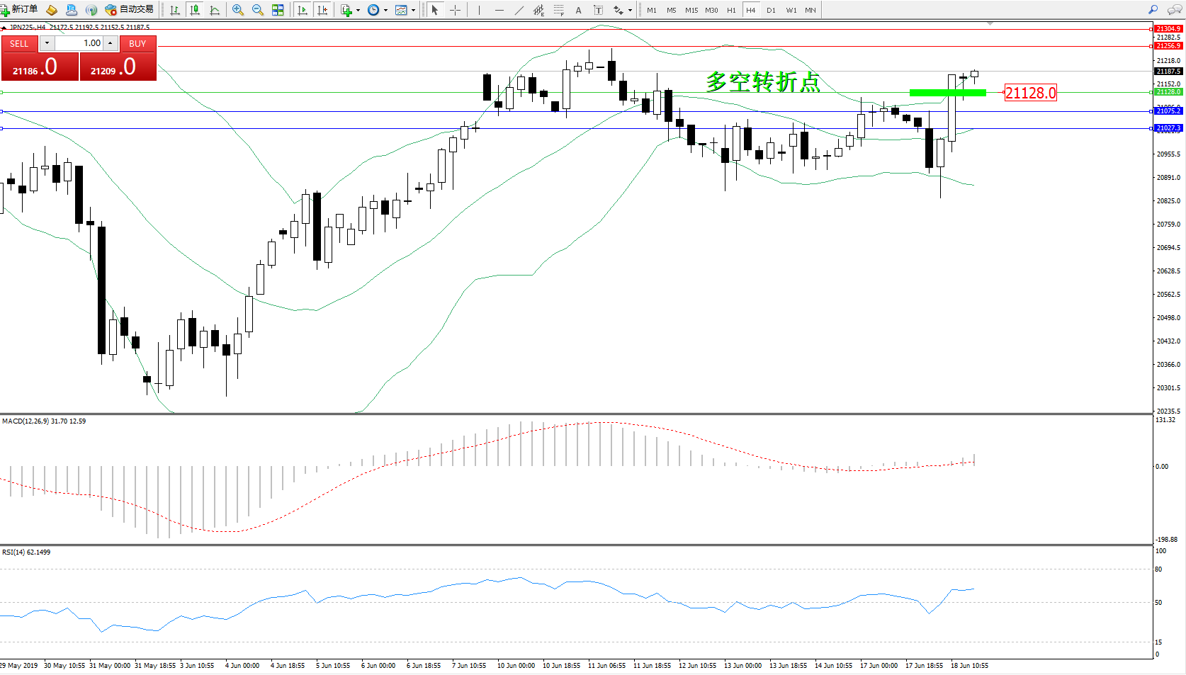 交易策略:21128上方看涨,目标21256、21304