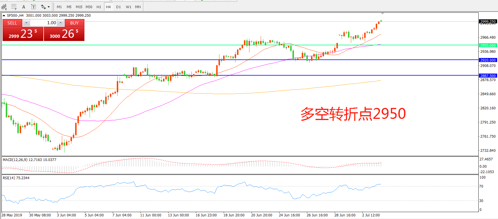 多空转折点:2950.00