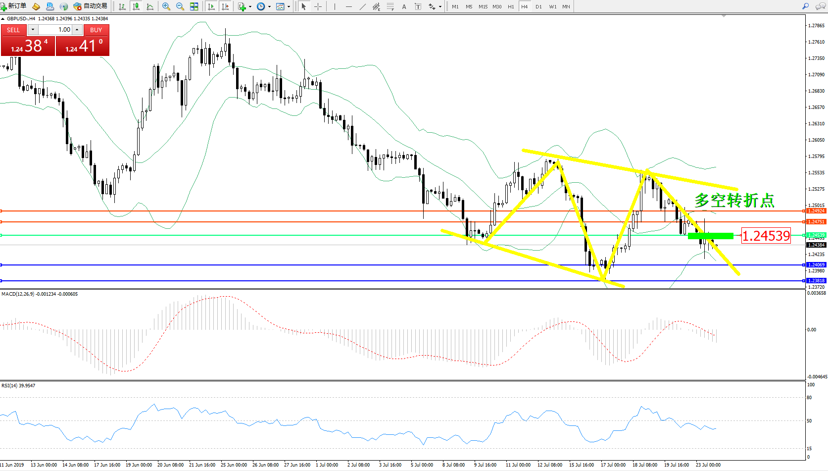 交易策略:1.24539下方看跌,目标1.240691.23818