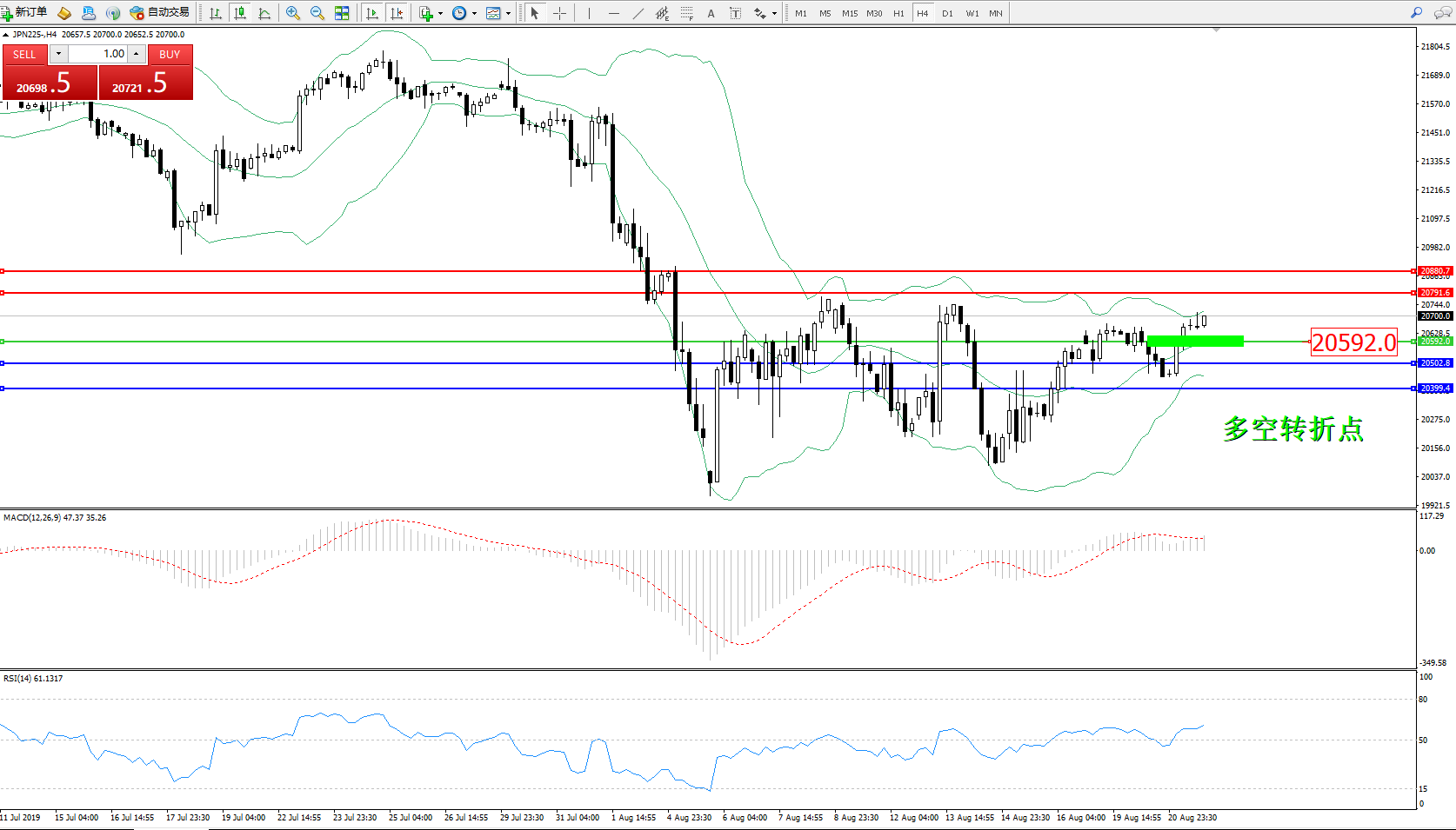 日经225指数8月21日(周三)收盘下跌68.22点,跌幅0.33%,报20609.00点。第九次中日韩外长会21日在北京召开,并发布“中日韩+X”合作概念文件,提出自愿、平等、开放、共赢、透明和可持续的合作原则。文件指出,2018年5月第七次中日韩领导人会议上,三国领导人重申将进一步深化和拓展在本地区的合作,一致同意开展“中日韩+X”合作,带动本地区可持续发展。文件列出“中日韩+X”多项合作领域:可持续经济、生态环保、减灾、卫生、减贫、人文交流等。