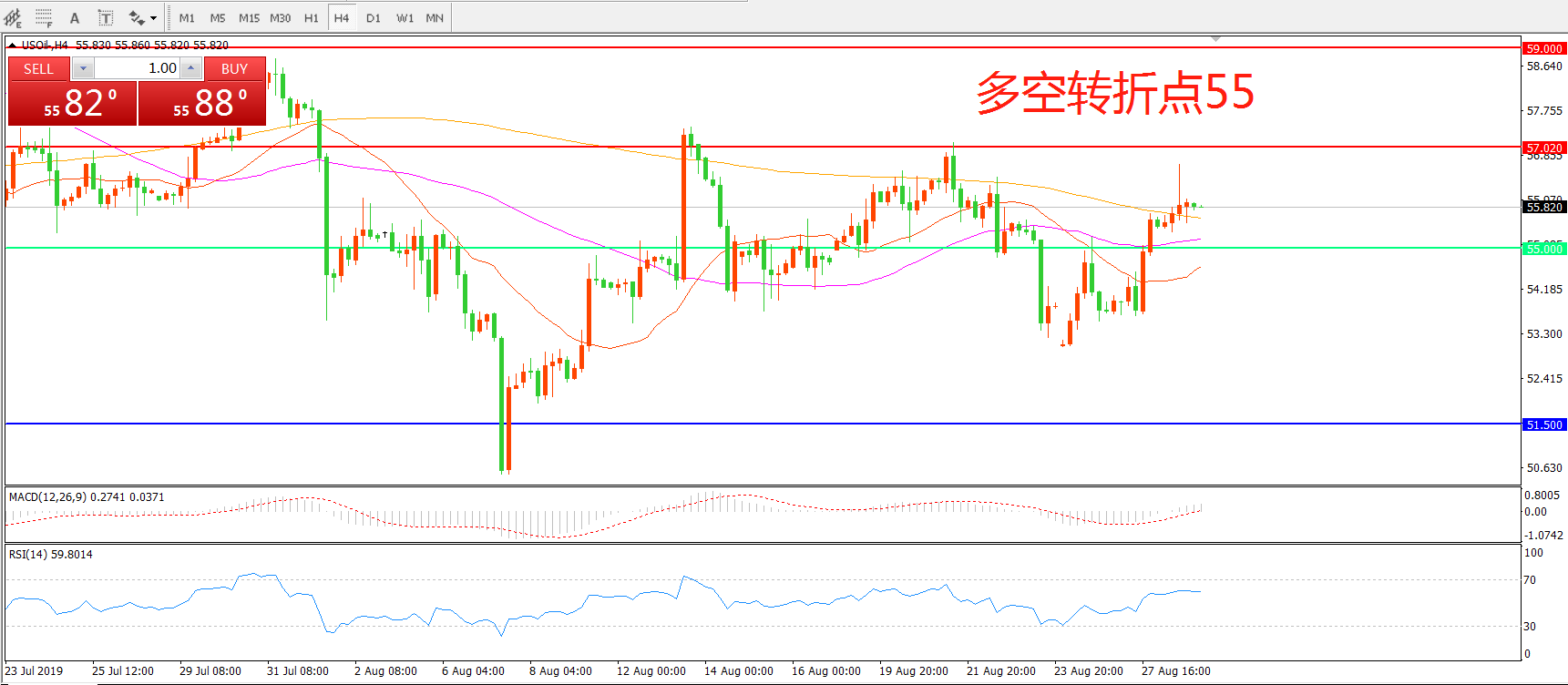 交易策略:在55.00之上看涨,目标57.00   59.00