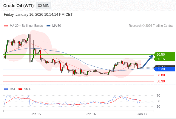 在 59.30 之上,看涨,目标价位为 60.15 ,然后为 60.50 。