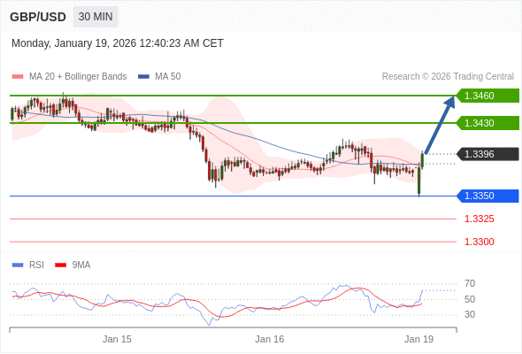 在 1.3350 之上,看涨,目标价位为 1.3430 ,然后为 1.3460 。