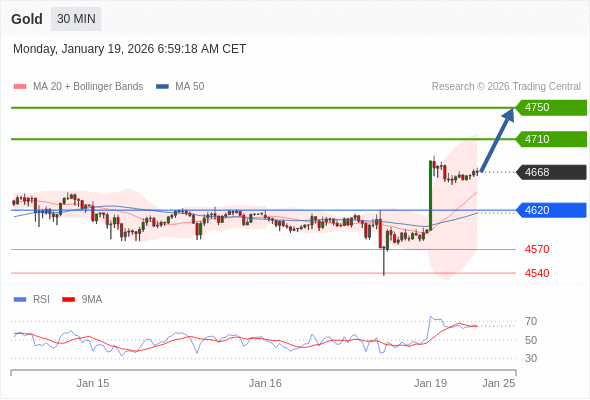 交易策略: 在 4620 之上,看涨,目标价位为 4710 ,然后为 4750 。