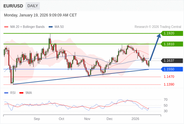 在 1.1550 之上,看涨,目标价位为 1.1810 ,然后为 1.1920 。