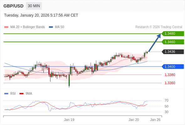 在 1.3400 之上,看涨,目标价位为 1.3460 ,然后为 1.3480 。