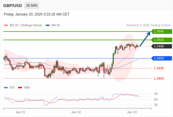 在 1.3460 之上,看涨,目标价位为 1.3515 ,然后为 1.3540 。