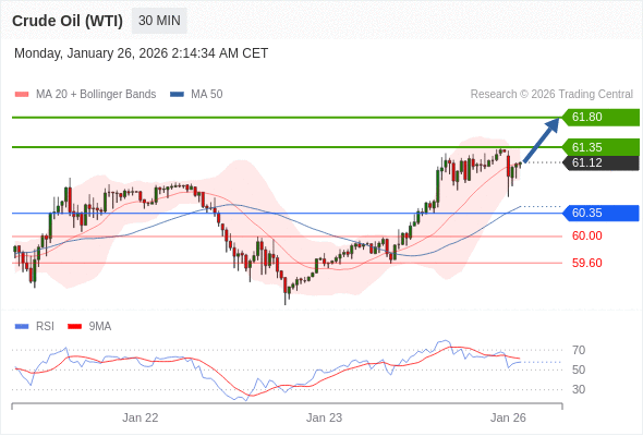 在 60.35 之上,看涨,目标价位为 61.35 ,然后为 61.80 。
