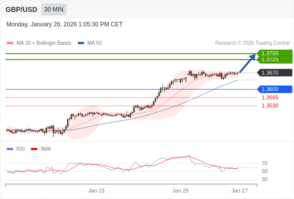 在 1.3600 之上,看涨,目标价位为 1.3725 ,然后为 1.3750 。