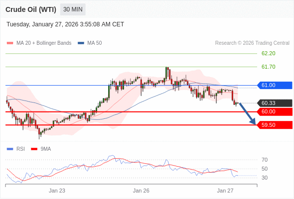 交易策略: 在 61.00 之下,看跌,目标价位为 60.00 ,然后为 59.50 。