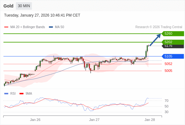 在 5105 之上,看涨,目标价位为 5202 ,然后为 5260 。