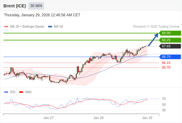 在 66.70 之上,看涨,目标价位为 68.25 ,然后为 68.90 。