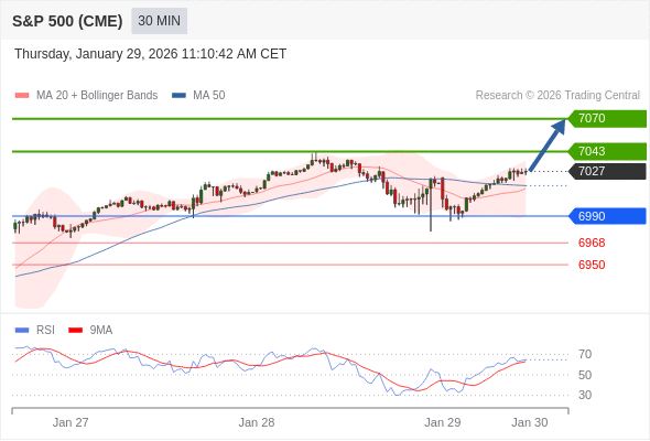在 6990 之上,看涨,目标价位为 7043 ,然后为 7070 。