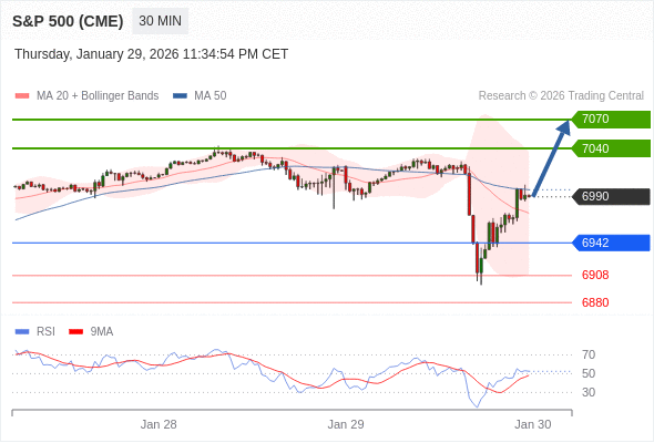 在 6942 之上,看涨,目标价位为 7040 ,然后为 7070 。