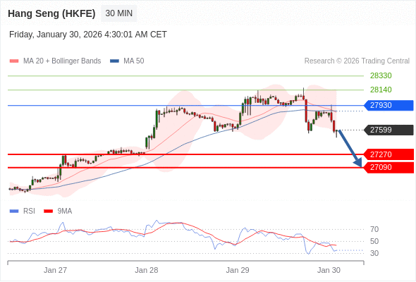 在 27930 之下,看跌,目标价位为 27270 ,然后为 27090 。