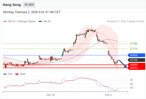 在 26900 之下,看跌,目标价位为 26500 ,然后为 26370 。