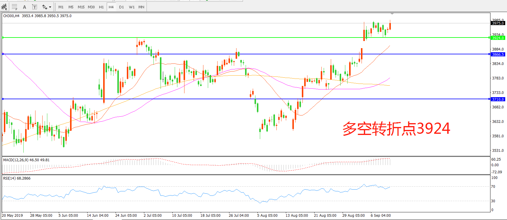 多空转折点:3924.00