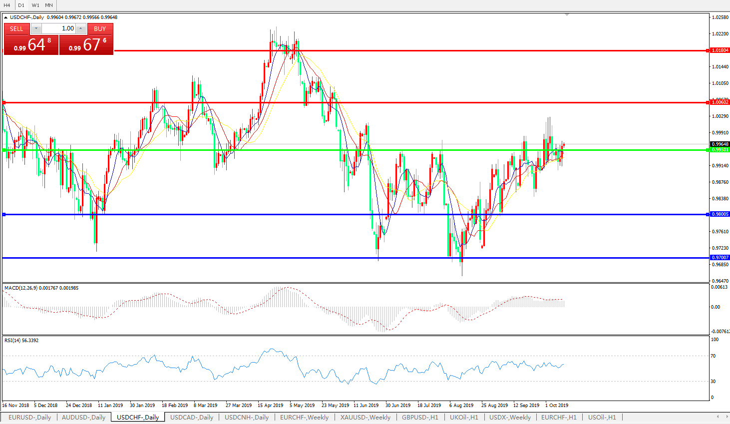 美元兑瑞郎USDCHF    日线