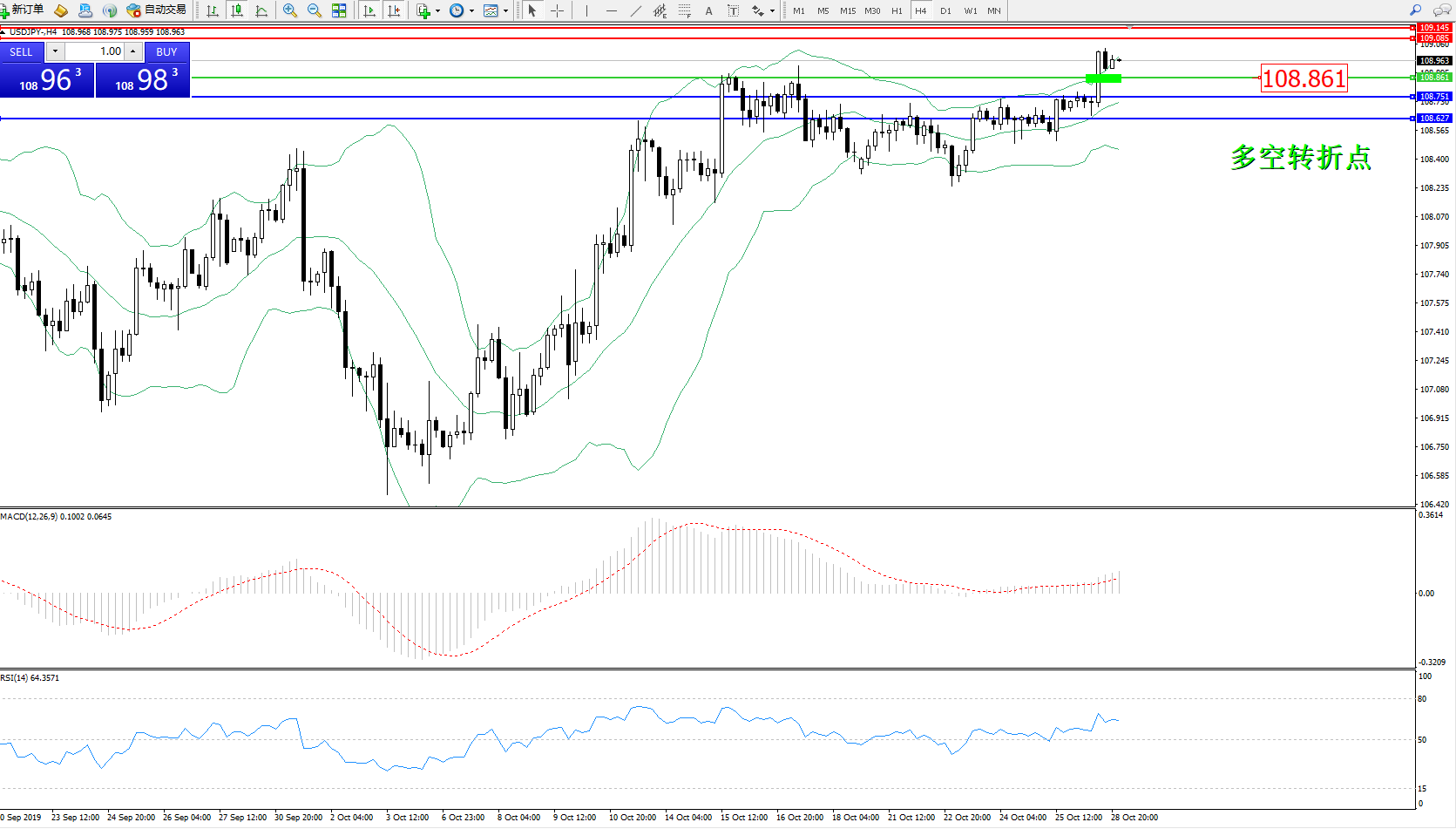 交易策略:108.861上方看涨,目标109.085109.145