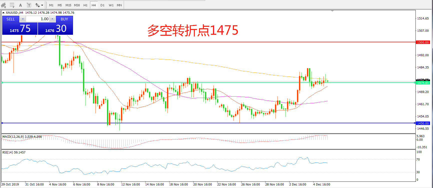 多空转折点:1475.00