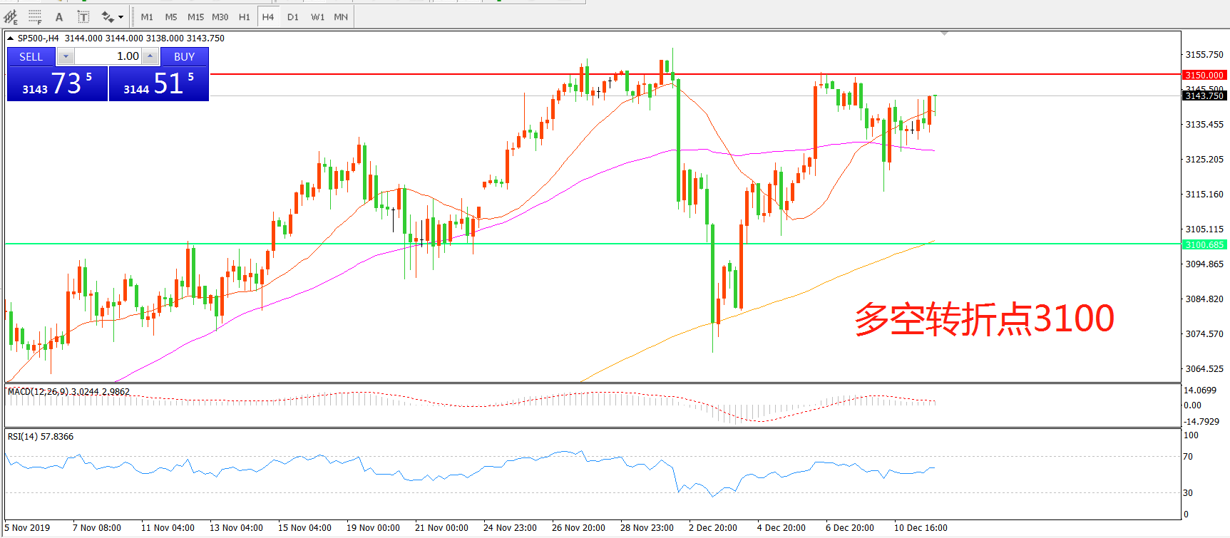 多空转折点:3100.00