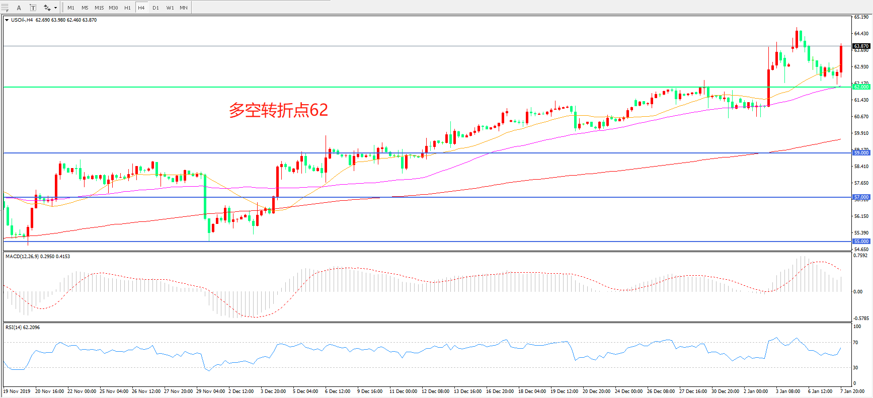多空转折点:62.00