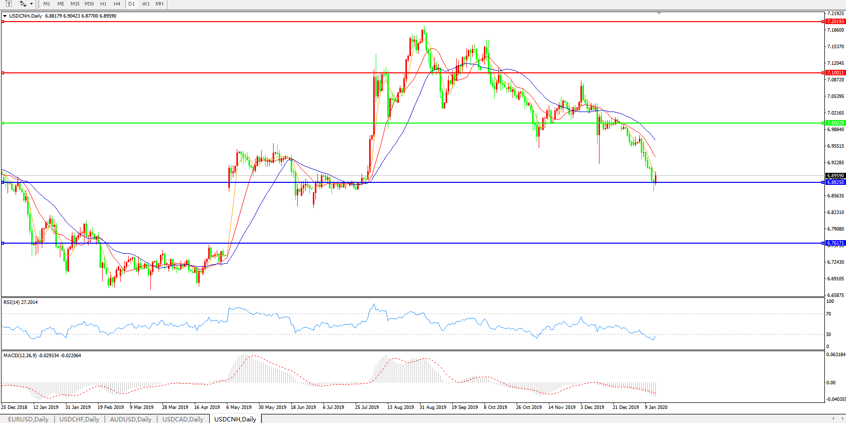 美元兑人民币USDCNH    日线图: