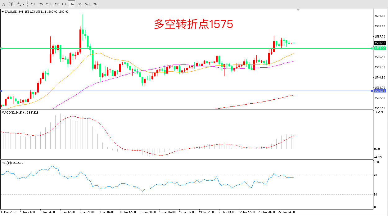 周一(1月27日),武汉冠状病毒疫情令资金集中涌入避险资产领域,金价从避险需求中得到支撑,现货黄金高开高走,收报1580.21美元/盎司/。本周市场关注焦点将在美联储利率决议,市场预计美联储将维持利率不变,而更为关键的是会议后美联储声明是偏向鸽派还是偏向鹰派。