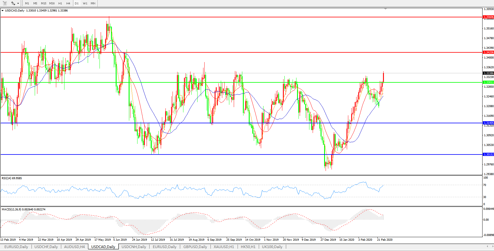 风险情绪发酵油价暴跌,美加冲高站上1.33关口