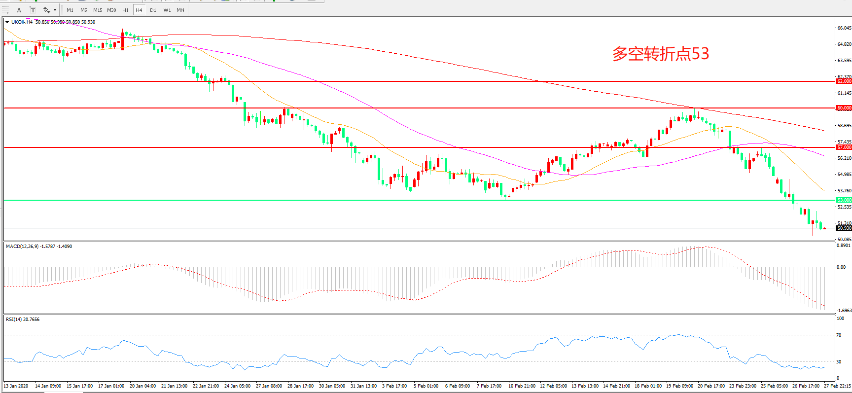 交易策略:在53.00之下看跌,目标50.00    46.00