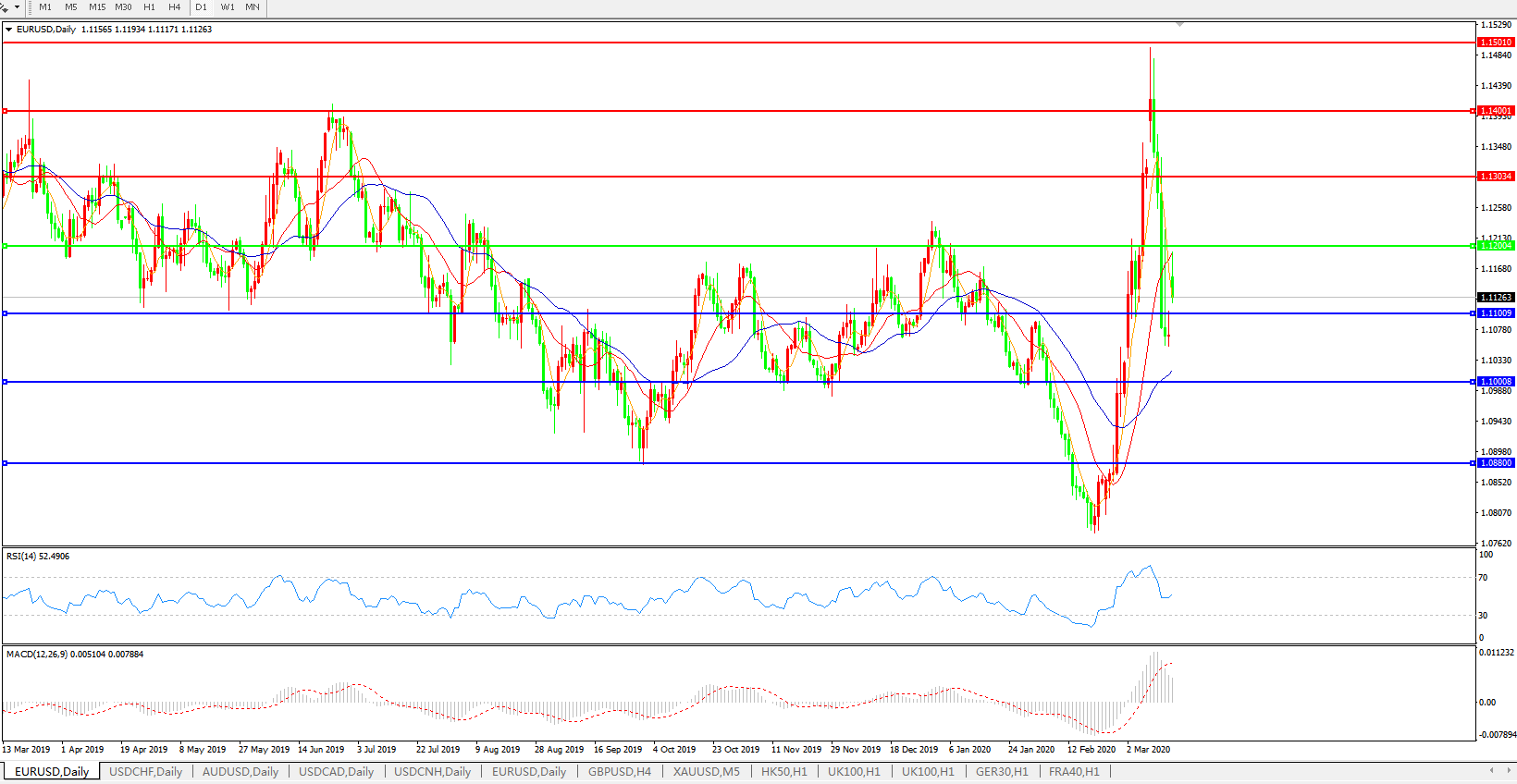 欧元兑美元EURUSD   日线图: