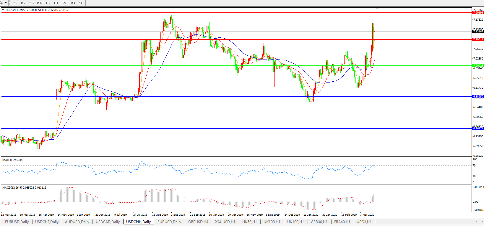 美元兑人民币USDCNH 日线图: