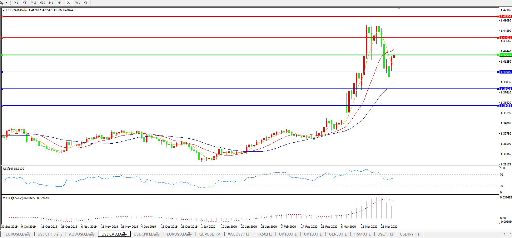 美元兑加元USDCAD    日线图: