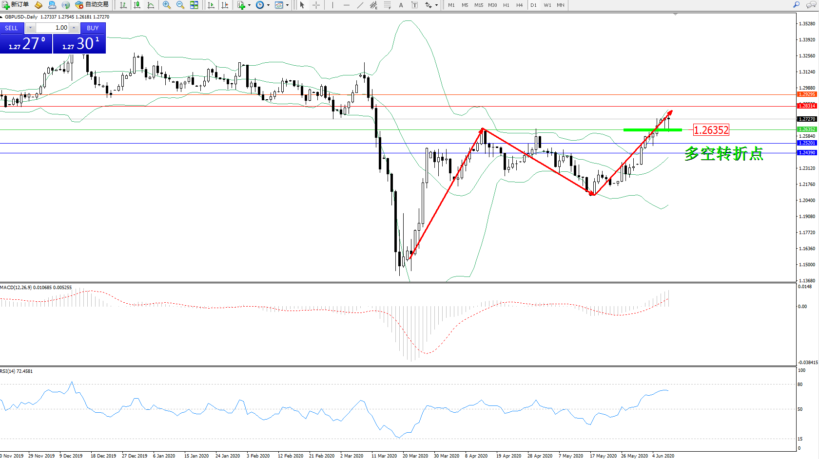 交易策略:1.26352上方看涨,目标1.283141.29295