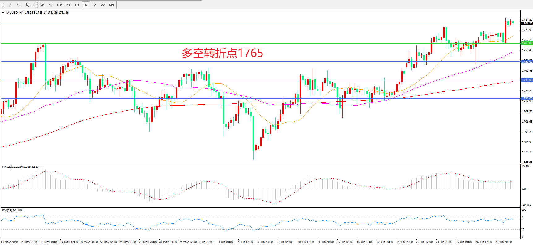 交易策略:在1765.00之上看涨,目标1780.00 1800.00