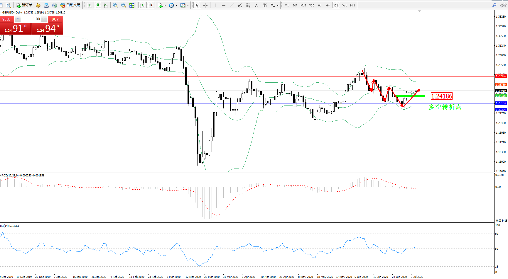 交易策略:1.24186上方看涨,目标1.257391.26924