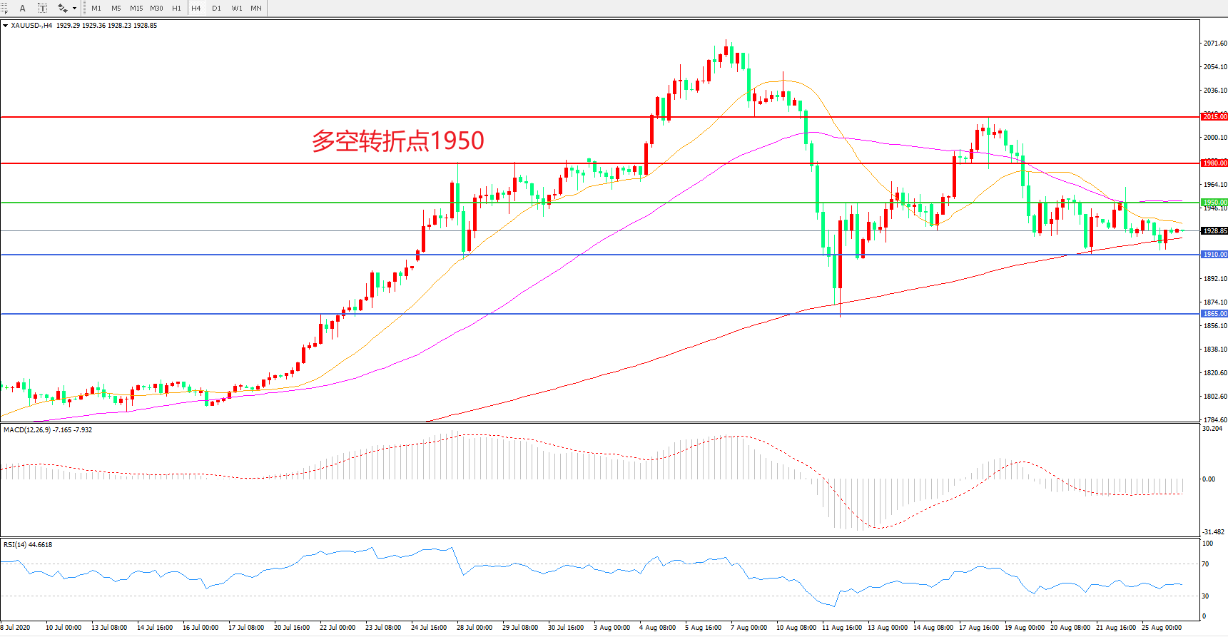 交易策略:在1950.00之下看跌,目标1910.00   1865.00