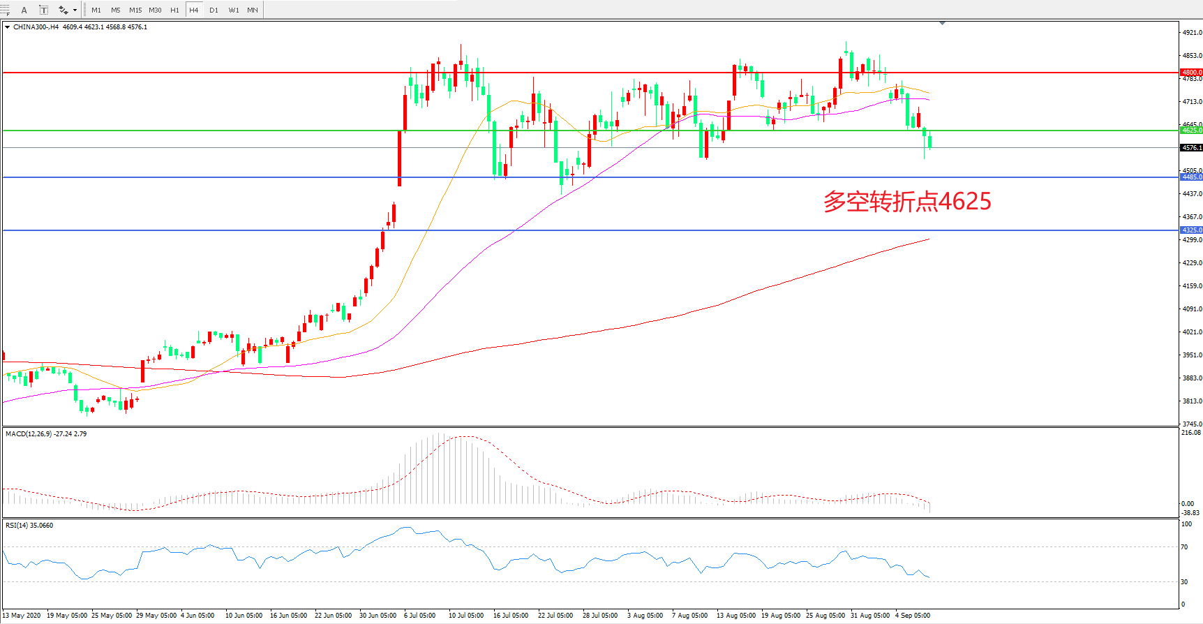 多空转折点:4625.00