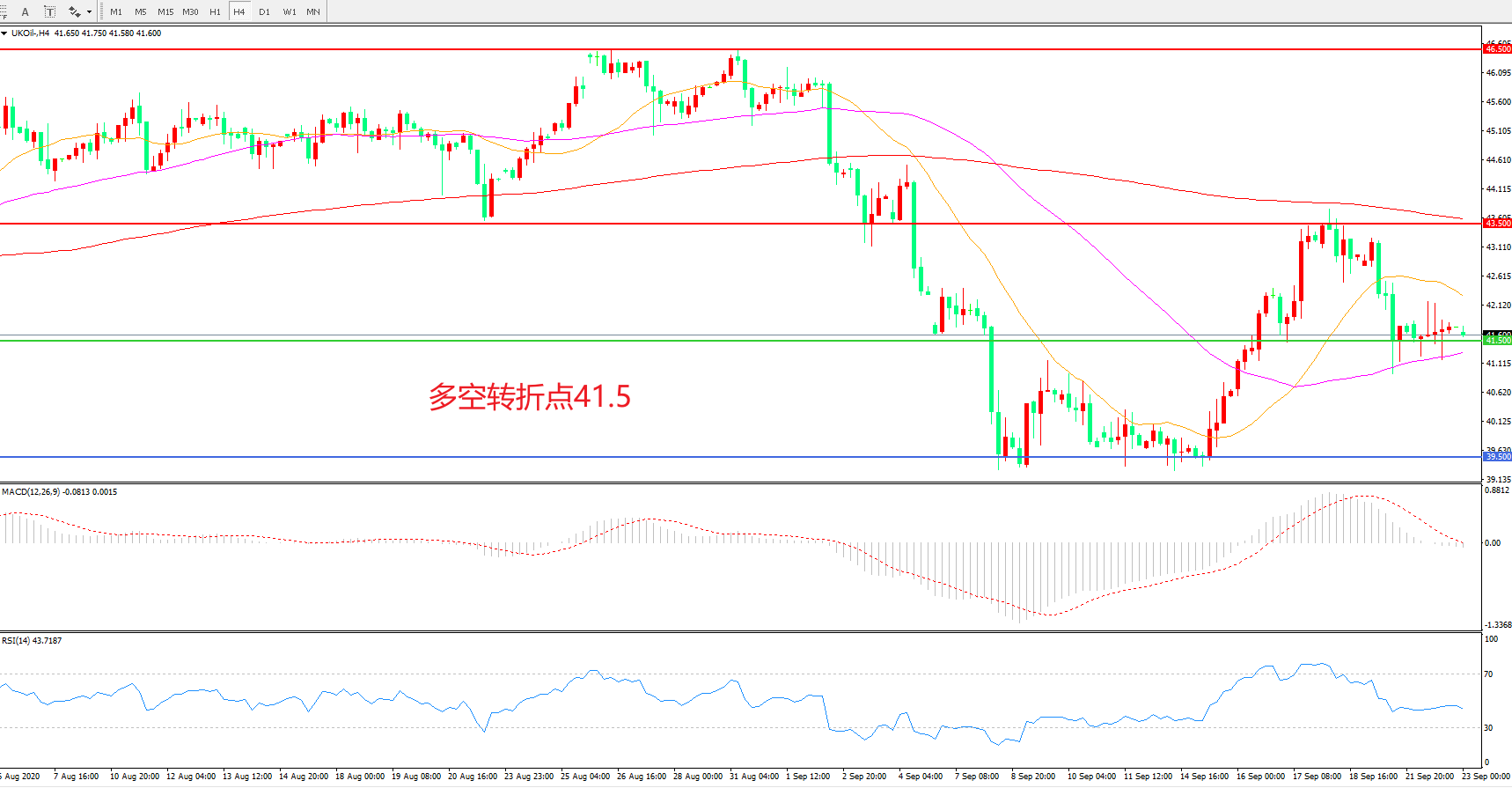 交易策略:   在41.50之上看涨,目标43.50      46.50