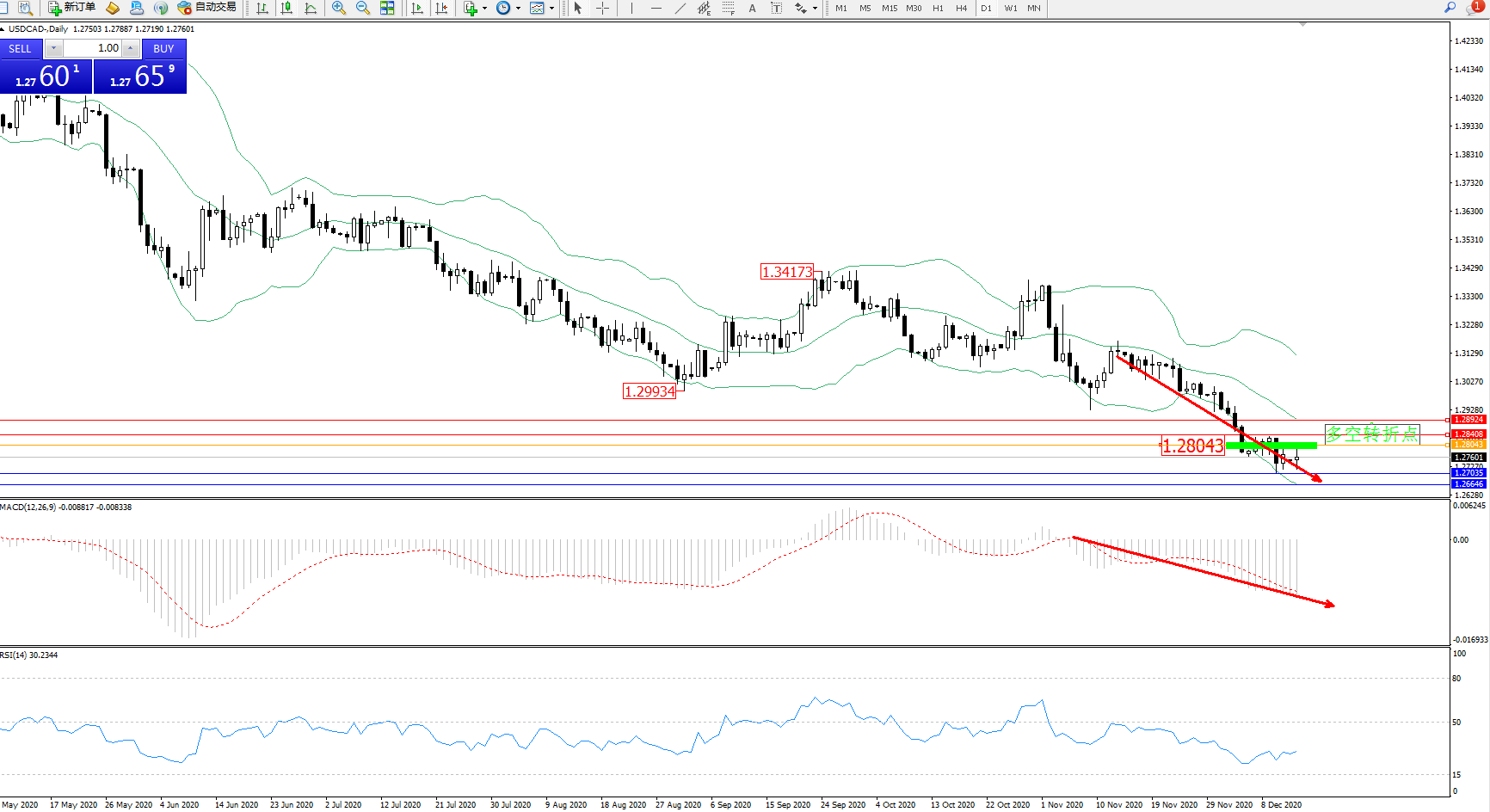 美元加元USDCAD——日K线图显示: