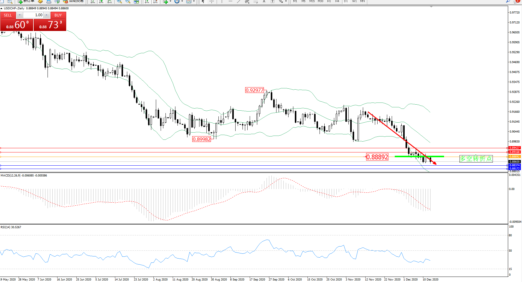 备选策略:0.88892上方看涨,目标0.89427、0.89168