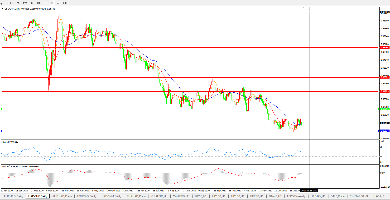 美元兑瑞郎USDCHF    日线图: