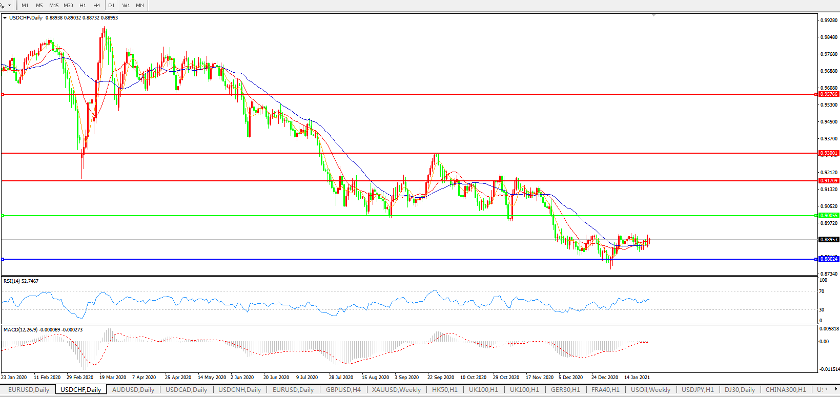 美元兑瑞郎USDCHF    日线图: