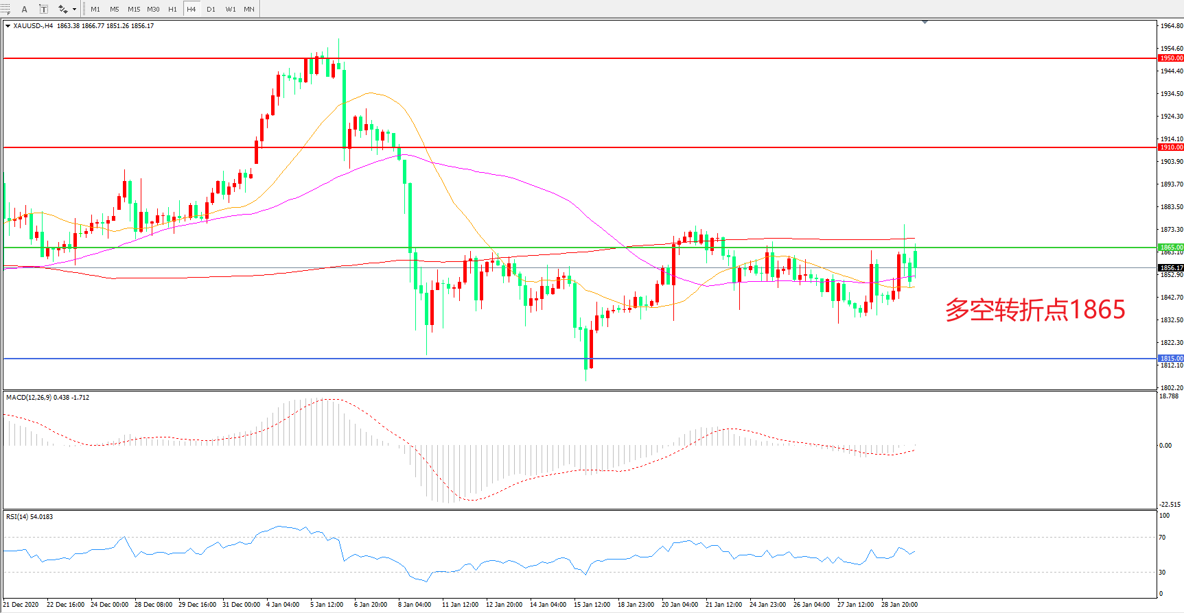 交易策略:在1865.00之下看跌,目标1815.00 1765.00
