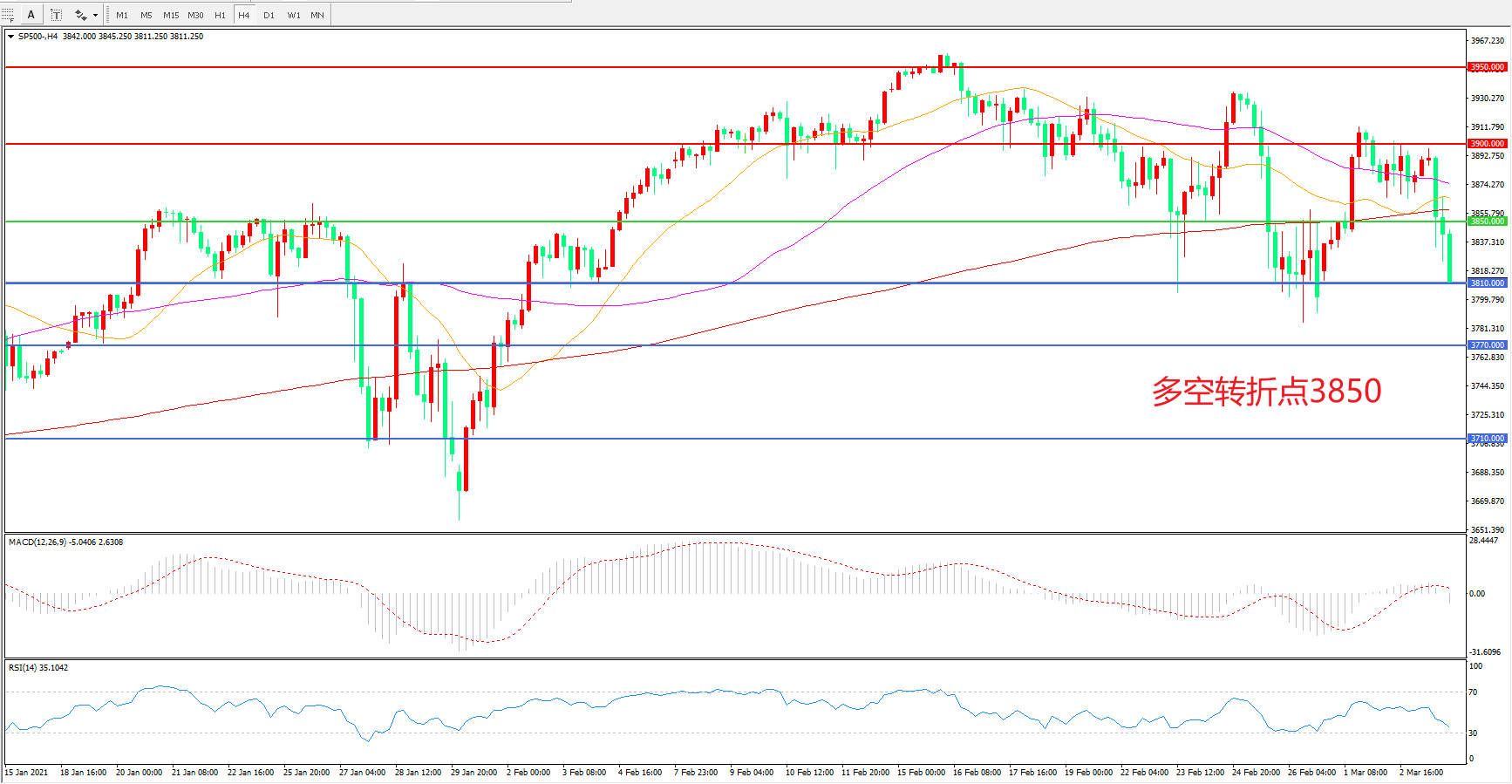 多空转折点:3850.00