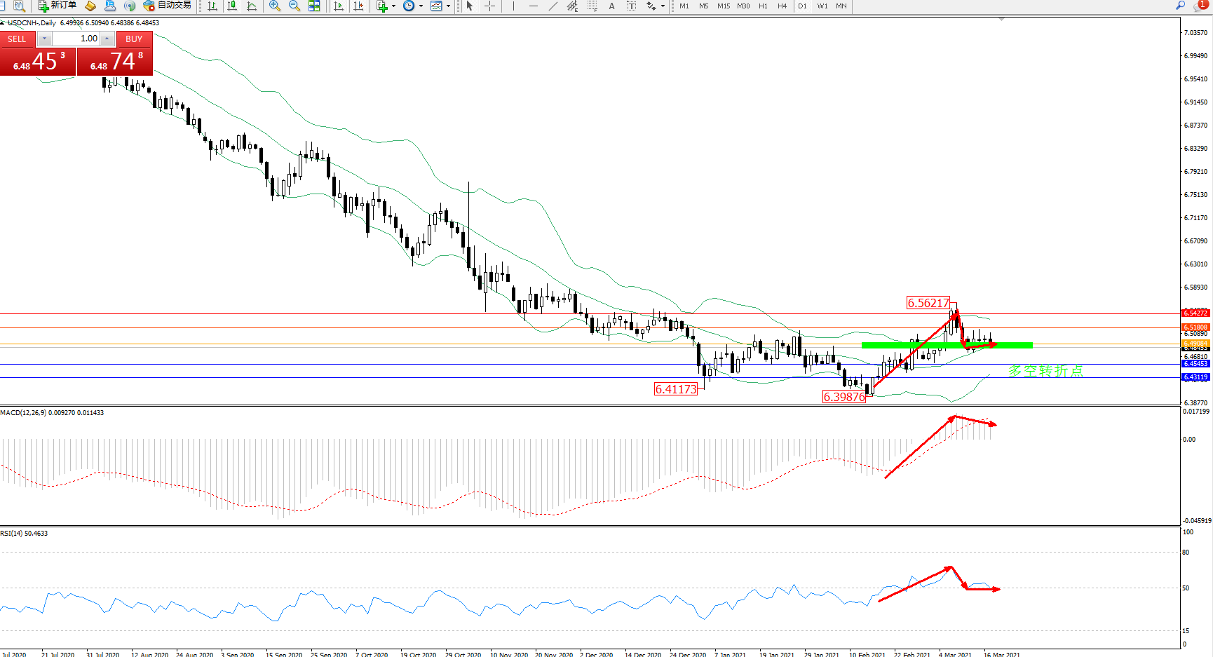 交易策略:6.49084下方看跌,目标6.45453、6.43119